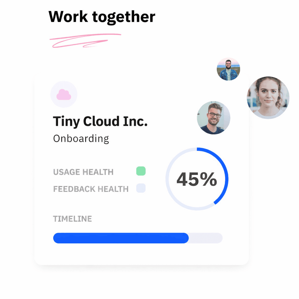 Shared Space is a dedicated collaboration portal between your team and your customer's team. Shared success plans, mutual milestones, real-time progress. CS becomes a partnership, not a service.